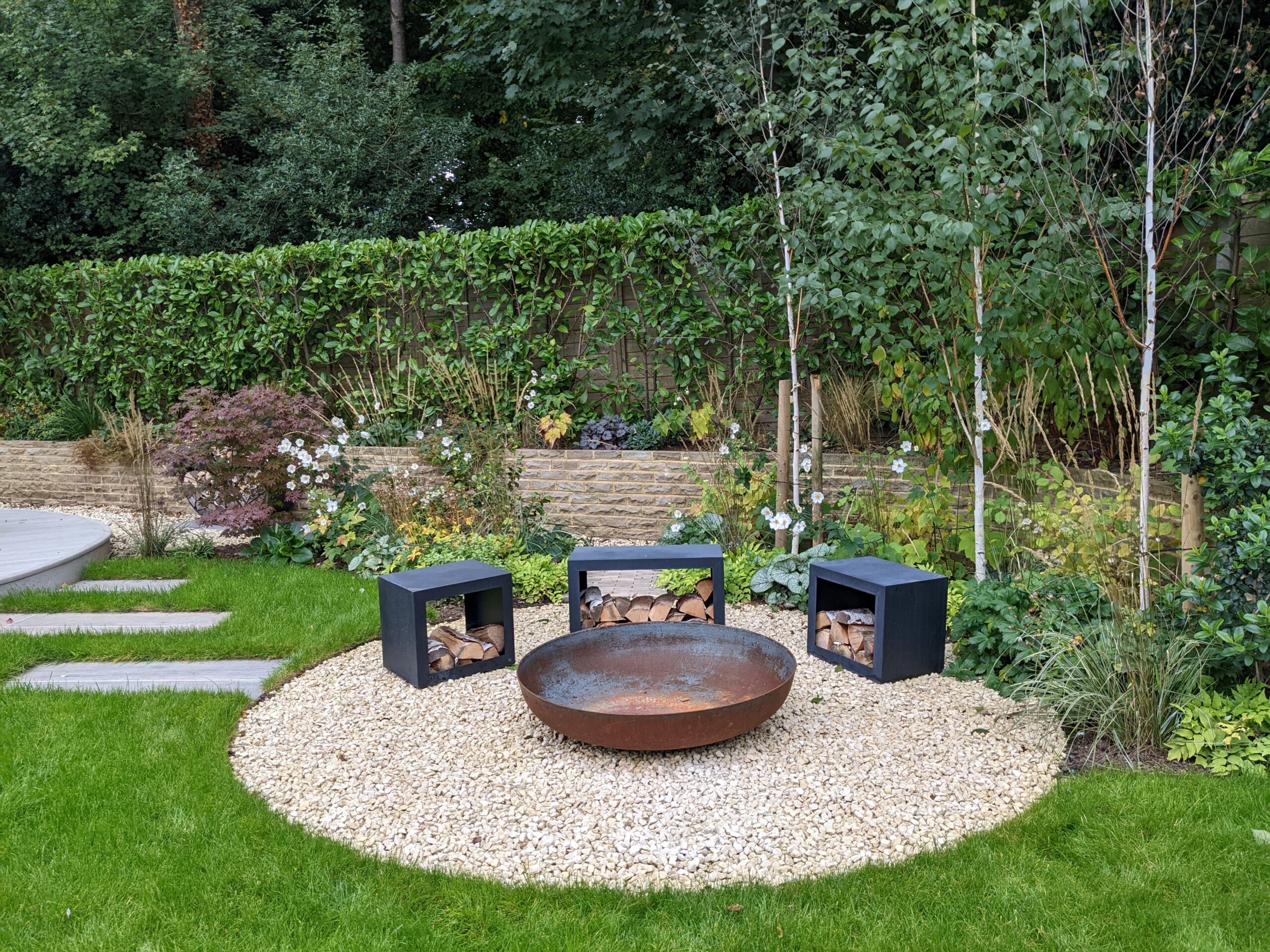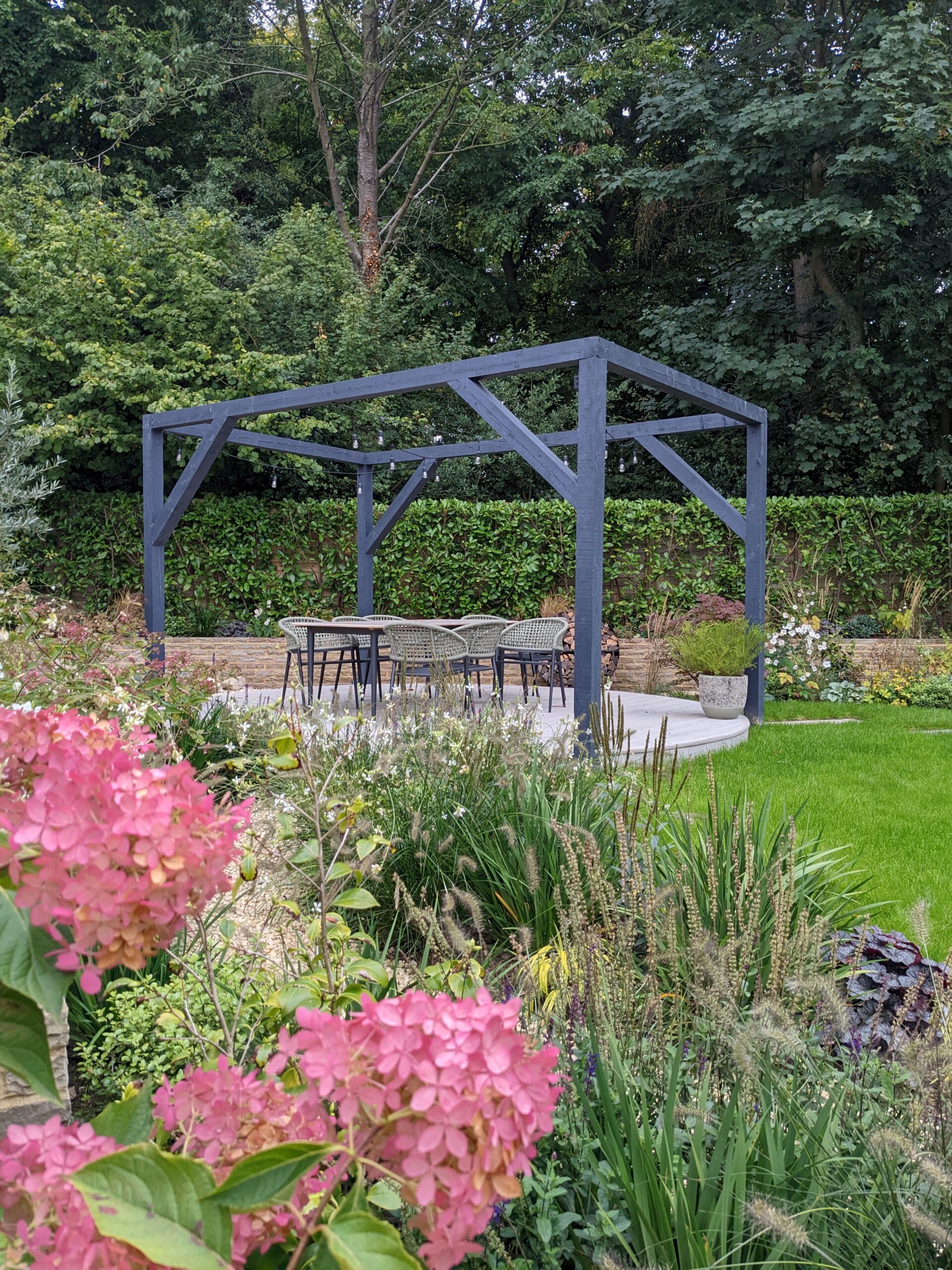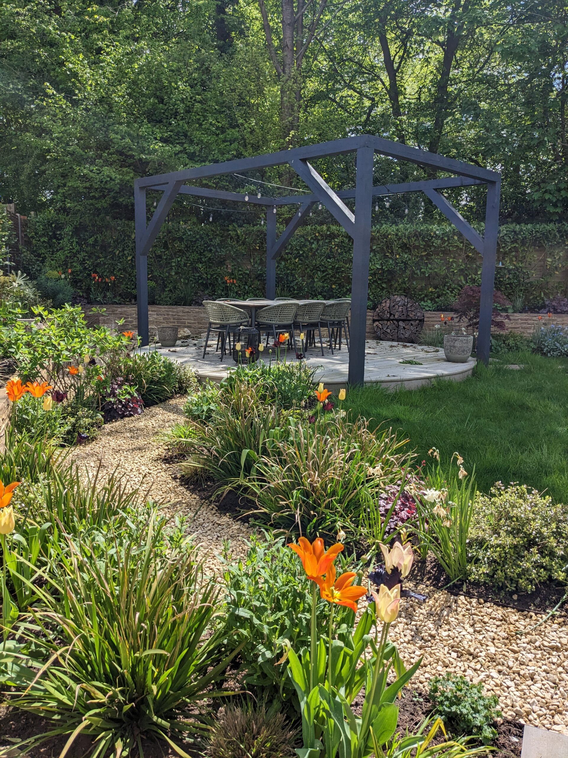 My clients asked me to develop a design for this garden that their children would enjoy and love exploring. It also needed an entertaining area and room to grow perennials and annuals. It has been a delight seeing this garden grow. My clients love spending time in it.