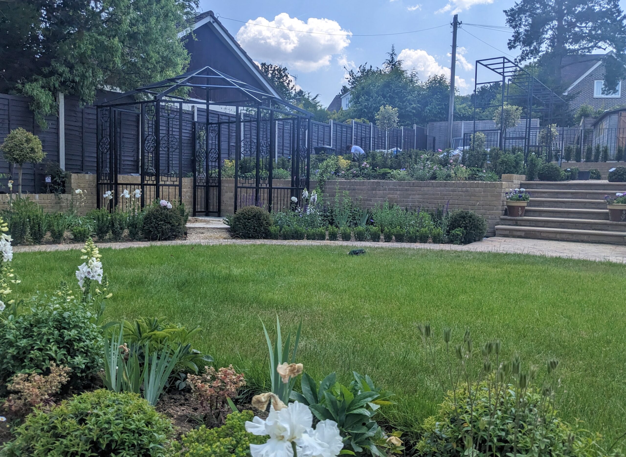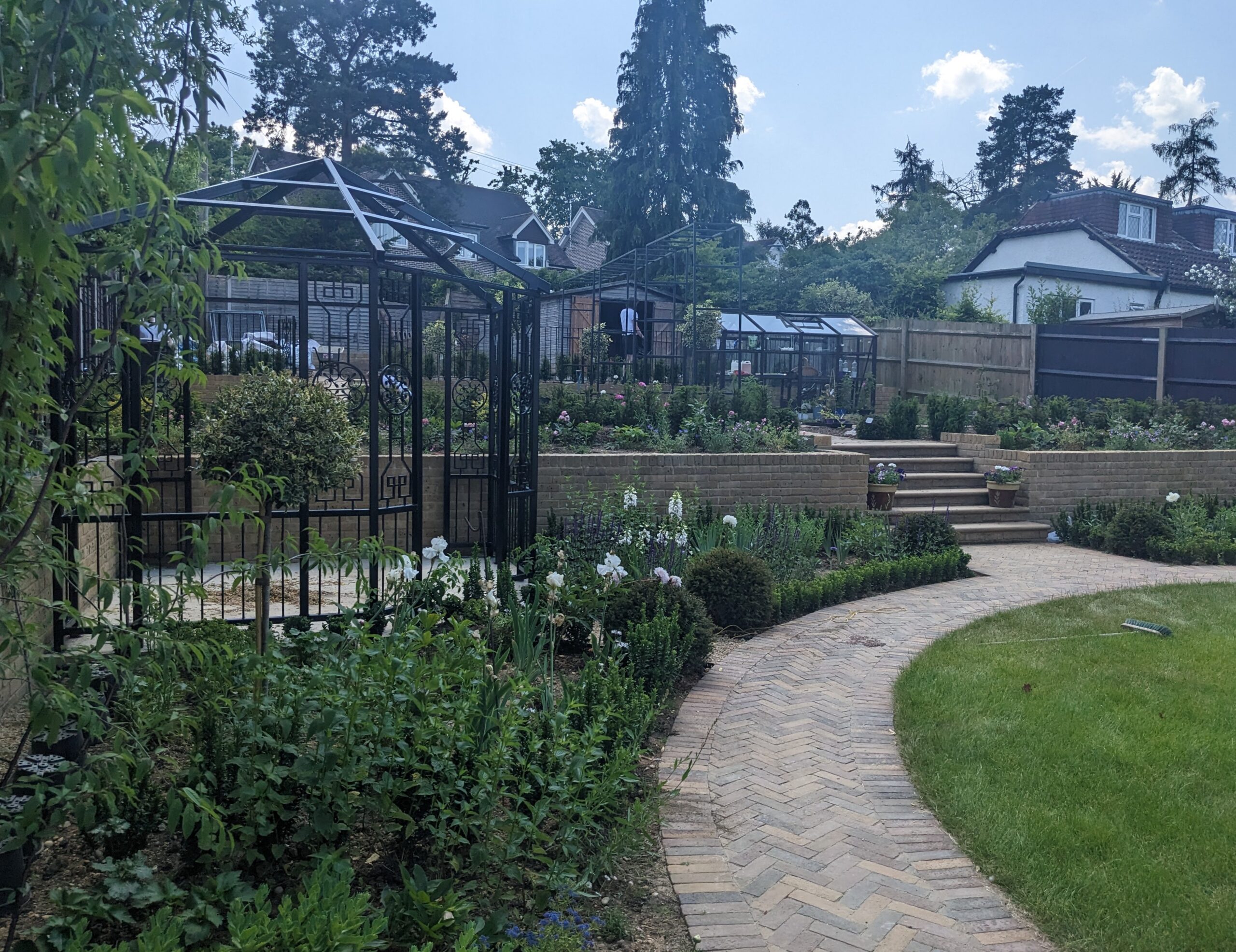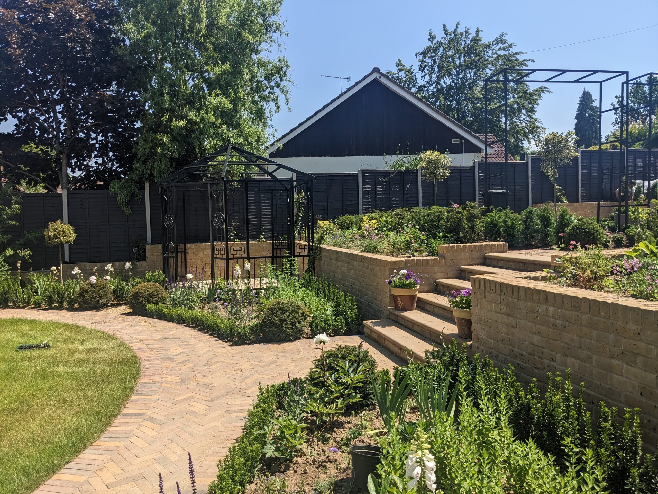 The clients wanted to change their sloped and difficult to access garden to a more structured old English style garden. We worked on the concept to ensure to get all the details right. It is now a tiered garden with a luscious Rose area, with many interesting Rose varieties.