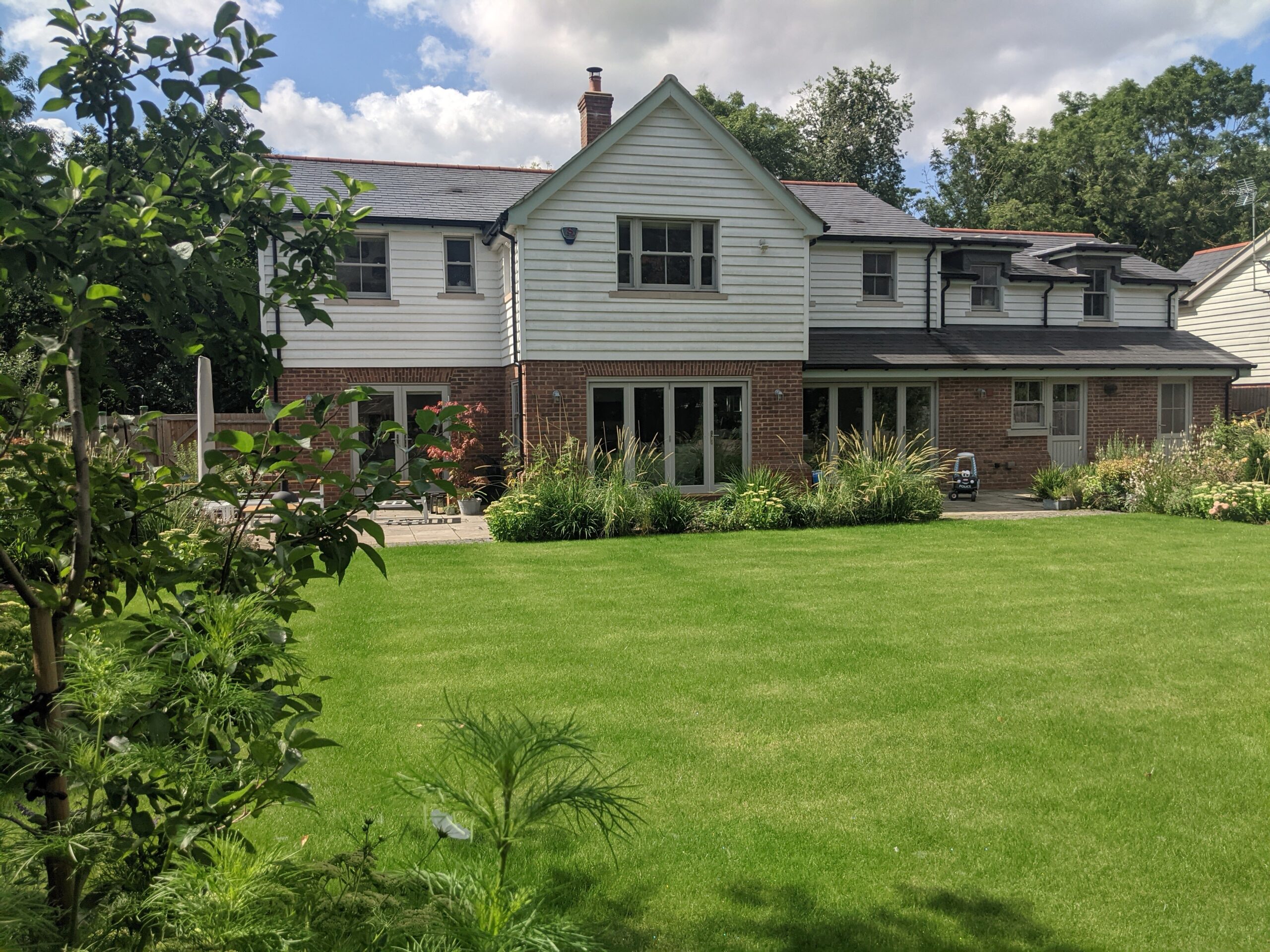 My clients have asked me to develop a design that could be completed over several stages, focusing on individual sections of the garden. It needed to include an area for growing fruit and vegetables, have an interesting area for children to play but mostly bring interest through planting.